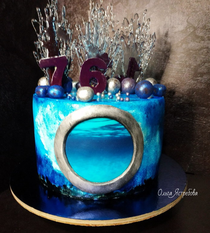 Вес торта 2кг, внутри кокосовые бисквиты и черносмородиновый крем чиз. Монетки и ракушки шоколадные, остальной декор из сахарной пасты.