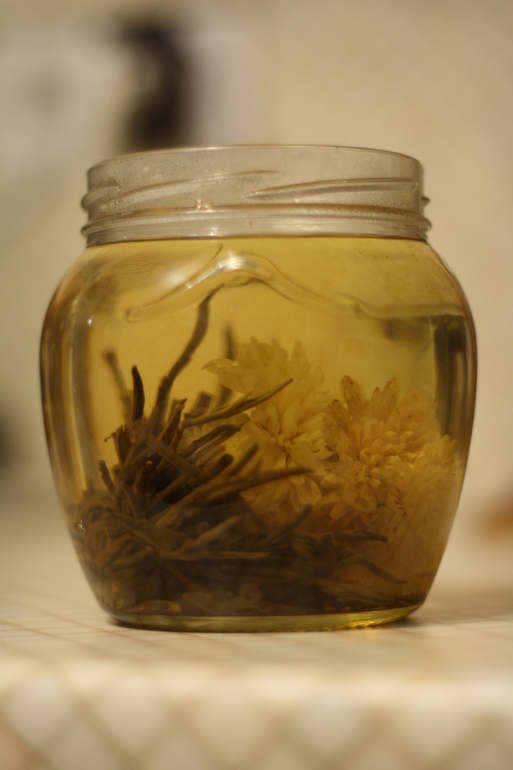 довелось нам тут выиграть сертификат на покупку всяких вкусняшек в чайной лавочке..решила там взять на пробу персиковый чай в шарике и вот какая красота получилась.чай раскрылся и оказалось в нем 3 красивых цветка)