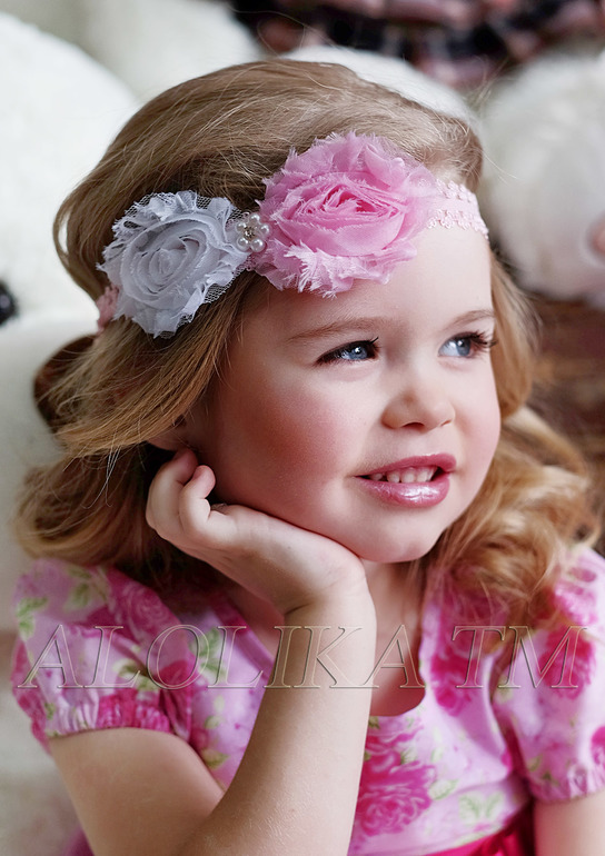 Кружевная повязка с цветком "Элеонора". Цвет бело-розовый, бело-сиреневый. Цена 150 руб.