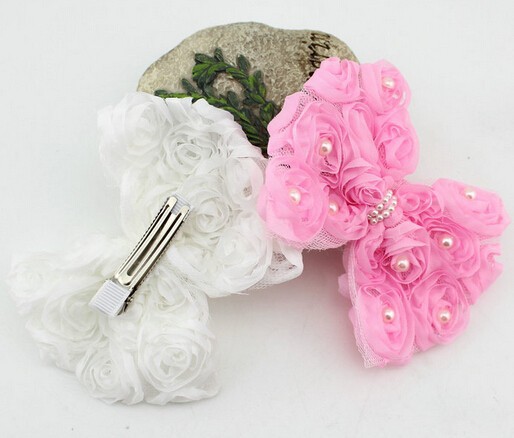 Заколка для волос "Бантик" с розочками и жемчугом. Цена 190 руб