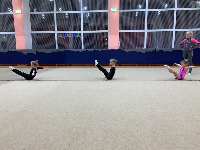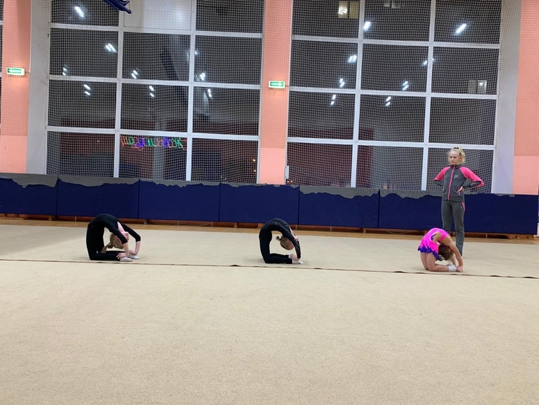 Моя дочка с опытной гимнасткой разделила четвертое место. Всего соревновались 18 девочек-гимнасток.