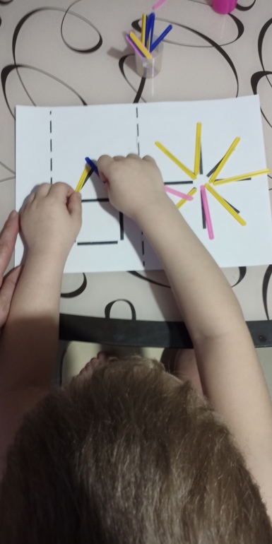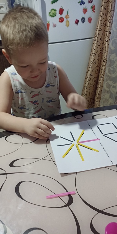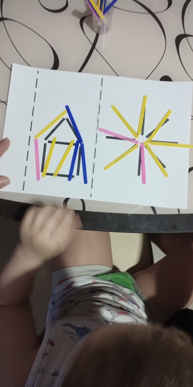 Развитие самого младшенькогоСтепа не может положить счётные палочки горизонтально.