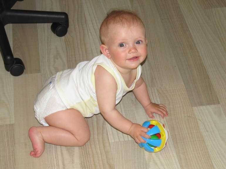 Внучке 9 месяцев. Такая симпатичная, такая лапочка. Не то, что её противные родители! :-))))