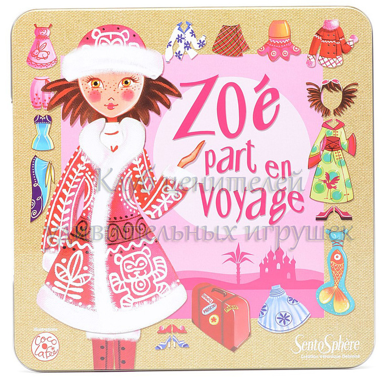 Очаровательная девочка Зоя обожает путешествовать, где она только не побывала. Магнитная игра очень нравится девочкам - можно наряжать куколку, менять ее наряды в зависимости от того, куда собралась отправиться маленькая Зоя. В комплекте: девочка на магните, 30 различных нарядов и аксессуаров, 4 фона.