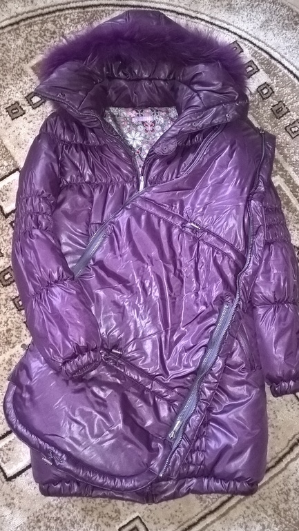 Зимняя куртка, цвета ЧЕРНИКА(фото не передает глубину цвета), отличного качества и очень теплая!!!! Носилась крайне мало, но удобство оценено как мной, так и малышом!!!