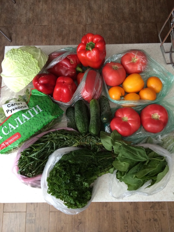 С Утра еше Сделала большую миску вот такого салата-основы(савойская капуста(открытие для меня,ела первый раз),зелень,морковь,зеленый перец,листья салата.