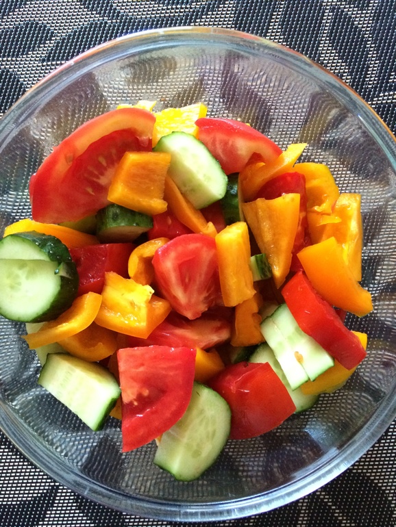 Салат(помидоры,огурцы,перец,активия 50 мл)