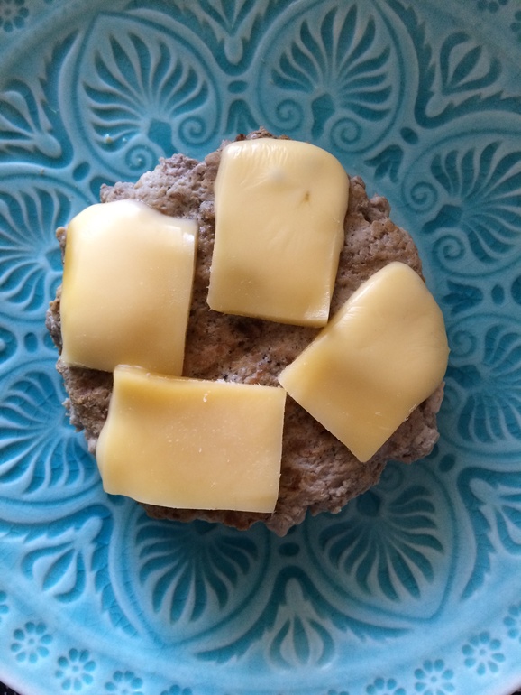 100гр творога ,100гр котлеты говяжей(из моих заготовок)