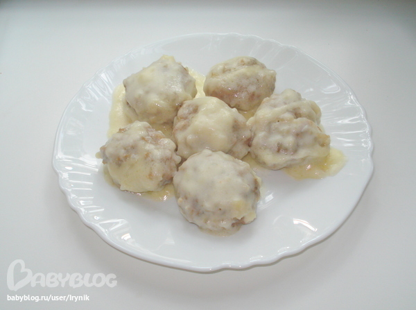 сформировла котлетки-медальоники, обжарила на сковроде слегка, сложила в кастрюльку, залила на