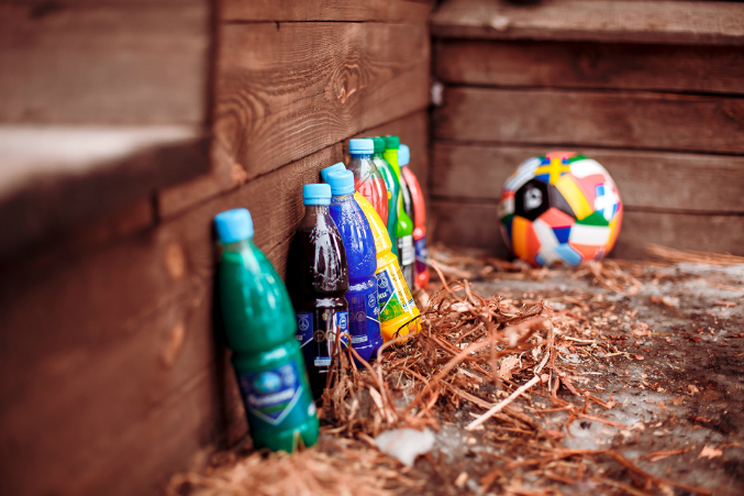 Разводили краску с водой дома, и все рисовали на снегу...)