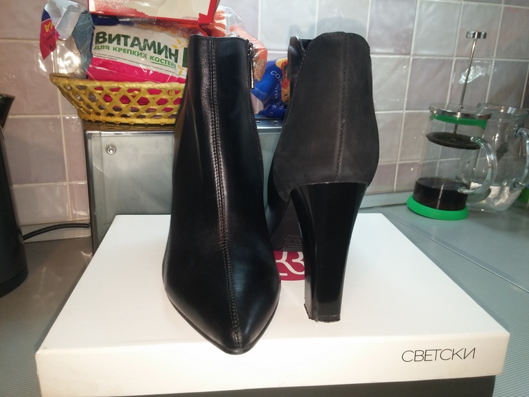 Одевпла 2 раза до беременности,теперь не могу носить каблуки(в идеале,только немного набойки стерлись. Внутри байка мягкая,сверху кожа/замша.2000р. М.коломенская