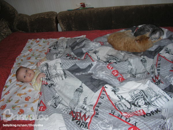 А это мы так спать ложимся. На заднем плане наши коты=)