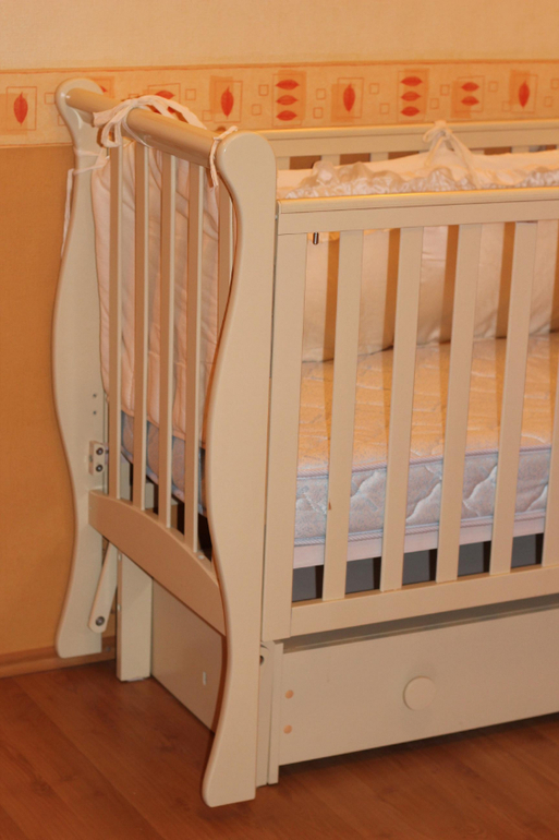 Продаем любимую кроватку "Кубаньлесстрой Лаванда", цвет "слоновая кость", с продольным маятником, с вместительным ящиком. Матрас "Афалина Баю-бай" 120 на 60, ортопедический, двухсторонний (зима-лето), пользовались наматрасником.