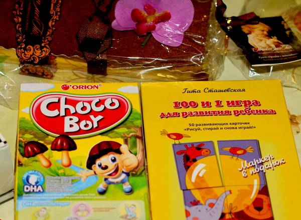 Были вкусные грибочки-печенье и развивающие карточки для Дениски.