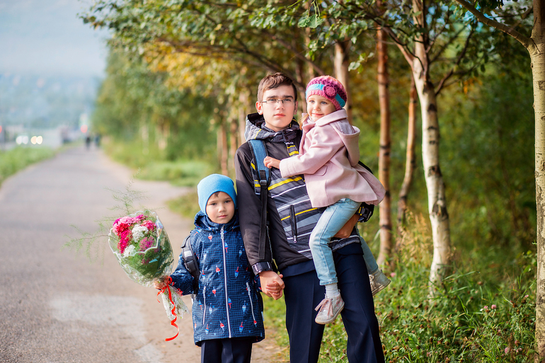 Настал этот день! Немного растеряный, даже не знаю, радостный ли мой ребенок. В школу пошли все вчетвером: Матвей, 9 класс уже, Денис, 1 класс, Тася -детский сад, и я!