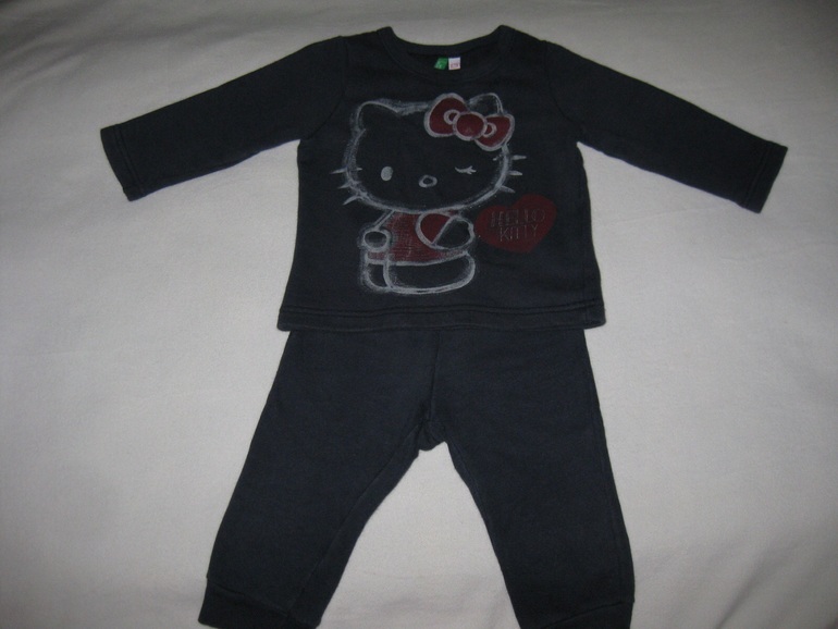 Костюм Benetton hello kitty, р-р 74 см. Состояние среднее, есть белесости от стирок, кое где катушки, 150 руб