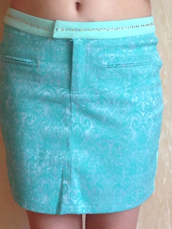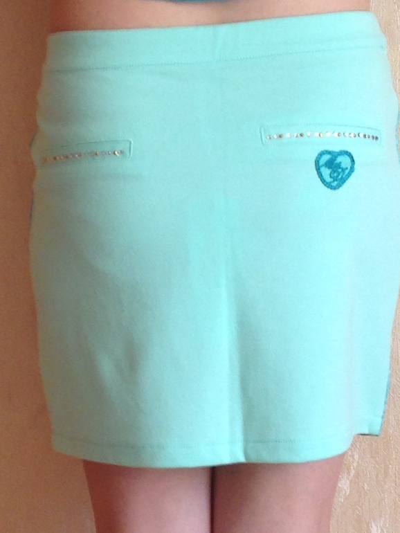 53. 1035 руб. Р-р 162 Юбка. Модель с прорезными карманами на молниях и стразами на поясе. бирюза![]()