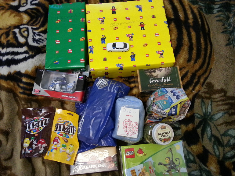 Алла.Подарочки получила ещё в пятницу но отчитаться смогла сегодня.Подарки пришли как раз к ДР сыночка и подарки достались всем.