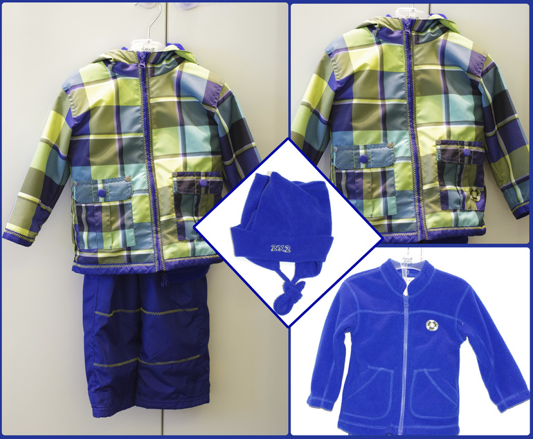 Комплект для мальчика 3 в 1: куртка на трикотажной подкладке, брюки с трикотажной подкладкой на резинке, съемный флисовый жакет и флисовая шапка с завязками.