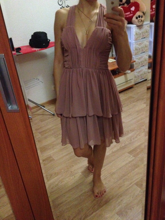 ГПлатье фирмы HM новое, только бирки срезаны. Ни разу не надевала, висит в шкафу без дела. Воздушное, легкое, нежного цвета. Только единственное, чтоб носить такое платье грудь должна быть пышной, т.к. декольте очень открытое. 400 руб.