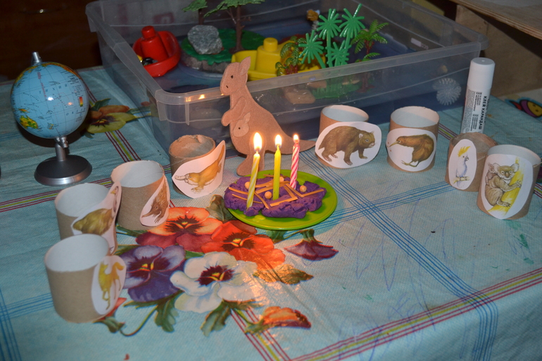 Так вот, идем... Миша говорит, что сегодня он будет играть в пиратов! Я перевела тему на Австралию, ну, типа конечно... надо спасать от пиратов наших животных, ведь пираты захватили их! Дальше больше... вспомнил про ДР Кенгуру и что торта у нее у бедненькой не было и гости то не накормленные остались)))))