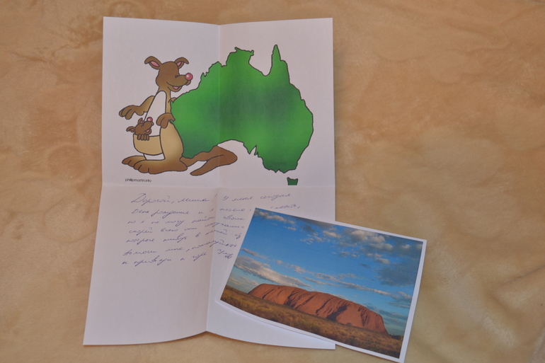 Написала письмо и вложила в него фото горы Улуру. Ведь место встречи именно там!