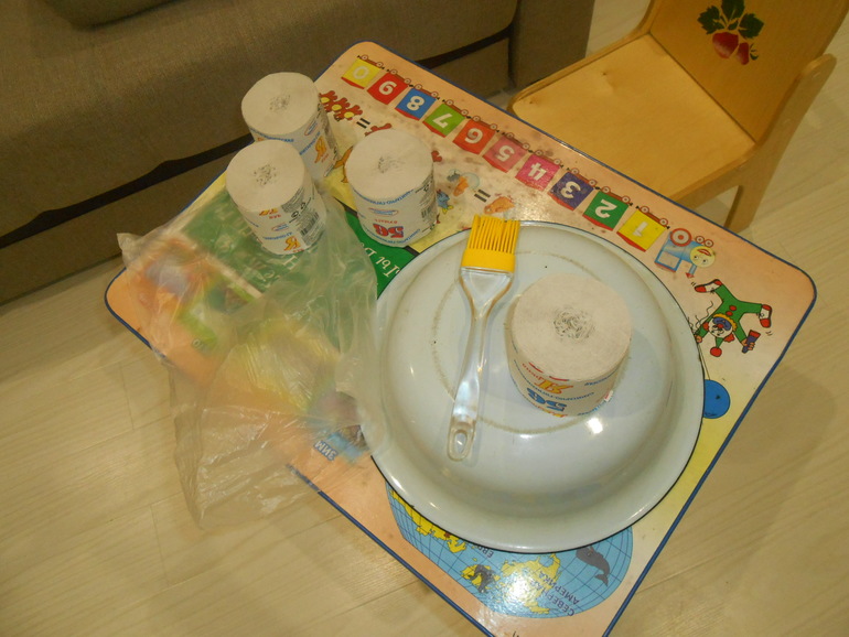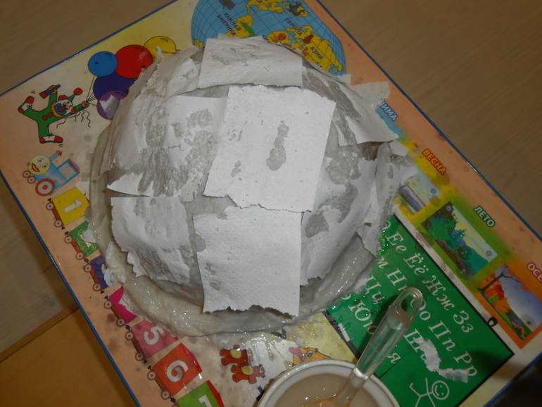 1. В папье-маше главное - форма. Идеально было взять наш надувной фит-болл, но поскольку Андрей этим мячем играл с Томкой, которая его ловила и кусала.... то фит-бол наш начал сдуваться...... Форму нашла случайно - у соседской бабушки попросила эмалированный тазик)