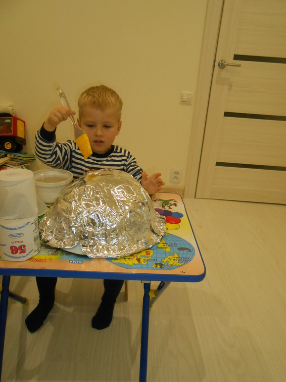 Но тазик не идеально подходит под задумку, форма скошенная.... Поэтому, взяла простую газету, смяла и добавила форму до округлости, зафиксировала все толстой фольгой и скотчем. Вообще фольга - это мега удобно, можно и без тазика было сделать форму и обмотать фольгой.