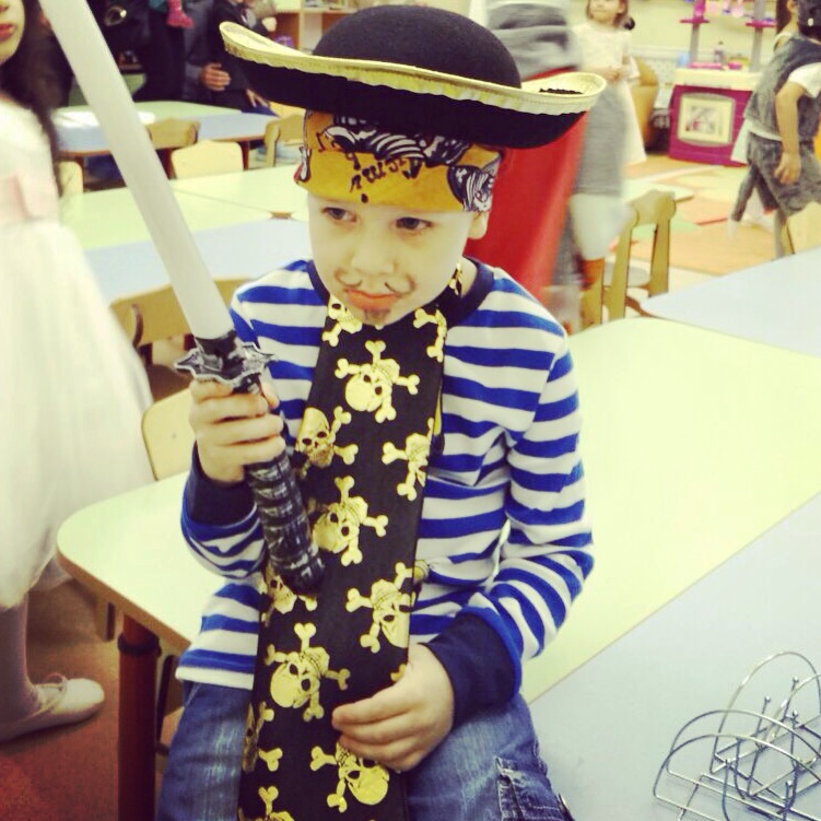В сад мы ходим с апреля, а утренник у сына был первый , до этого мы не попадали на мероприятия. Ходили всей семьей, муж снимал видео, я сделала пару фото с телефона, так как одним глазом следила за представлением, вторым -за Федей) Арсю был пиратом ( захотел сам, ни мушкетером, ни суперменом) соорудили костюм из ничего за вчерашний вечер) на будущее -мне нужно заниматься заблаговременно, а не обзванивать в последний день интернет-магазины, кто сможет привезти готовый костюм) мне было волнительно, я аж прослезилась, когда детки "цепочкой" в зал входили)