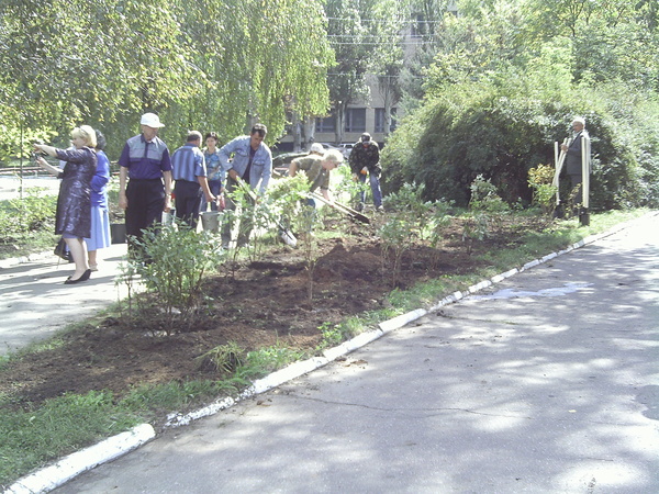 После того, как Славянск обрёл статус города-курорта, появилась традиция высаживать деревья... Мер города на красных шпильках идёт орудовать лопатой)))