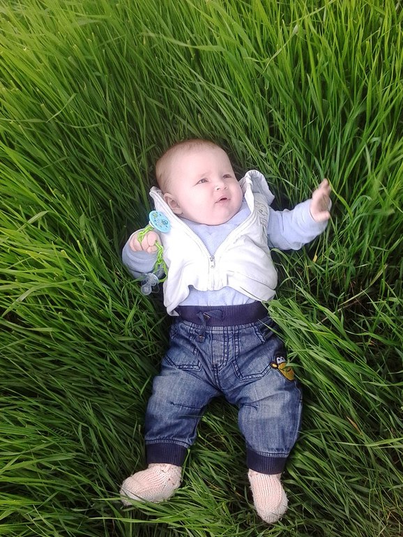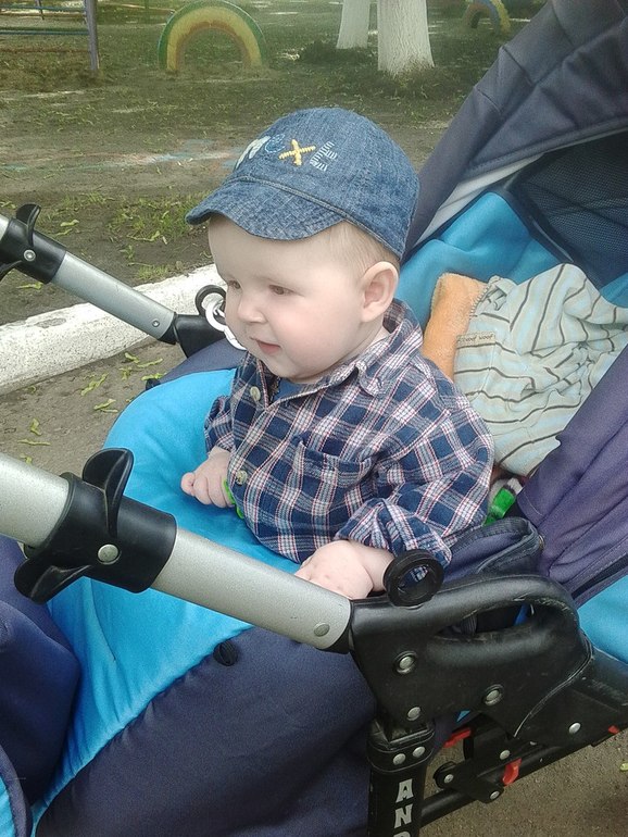 Ползает, ходит возле опоры, играет с сестрой. Говорит "да", "дай", "тата", но все это ещё не осознанно...
