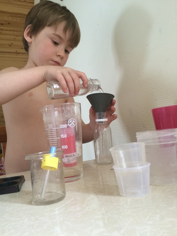 Никогда не выбрасываю банки-склянки, большие отдаем на растерзание под соленья, маленькие отдаем Тиме в лабораторию. Громко сказано:)) он просто сидит и переливает, смешивает, добавляет чего то, говорит, опыты ставит.