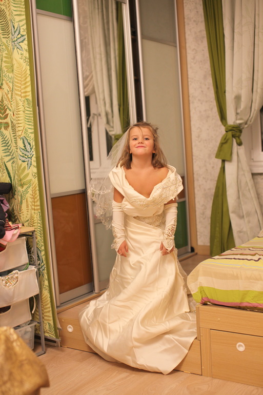 Бонусом. Вера на примерке моего свадебного платья (нашла в гараже пакет с ним и привезла домой. Я и сама примерила - муж сказал, что еще раз бы на мне женился.