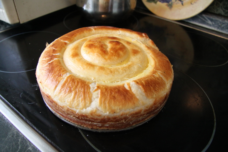 Лучше готовому пирогу дать постоять, а можно просто смотреть как ваш муж пытается его слопать, обжигает лицо горячей начинкой и испытывает страдания)))