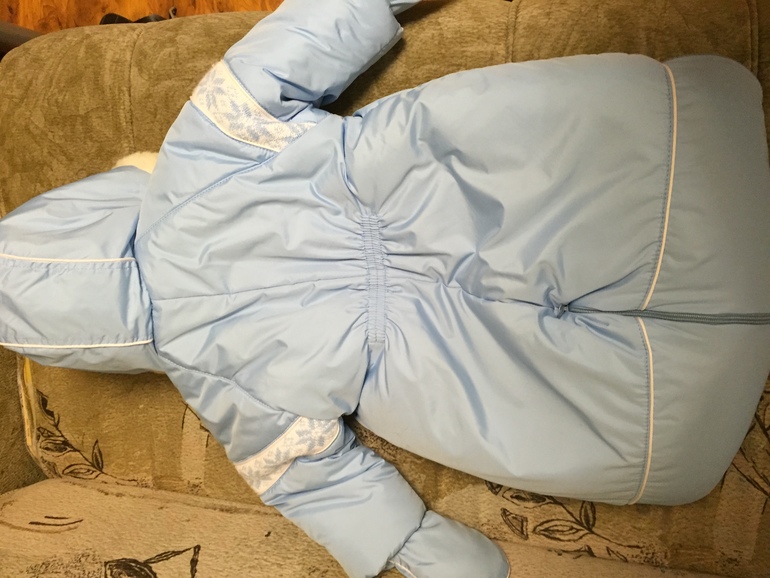 комбинезон очень тёплый, комфортный. Можно сделать конверт или закрытыми ножками. Написано рост 74/80.