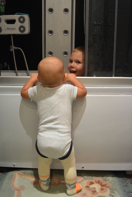 Моется Ванюшка исключительно стоя, или прыгает по всей ванне)