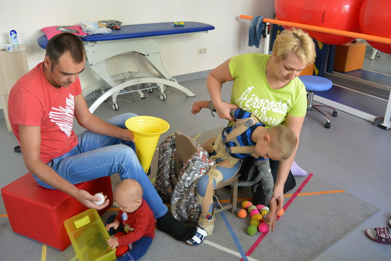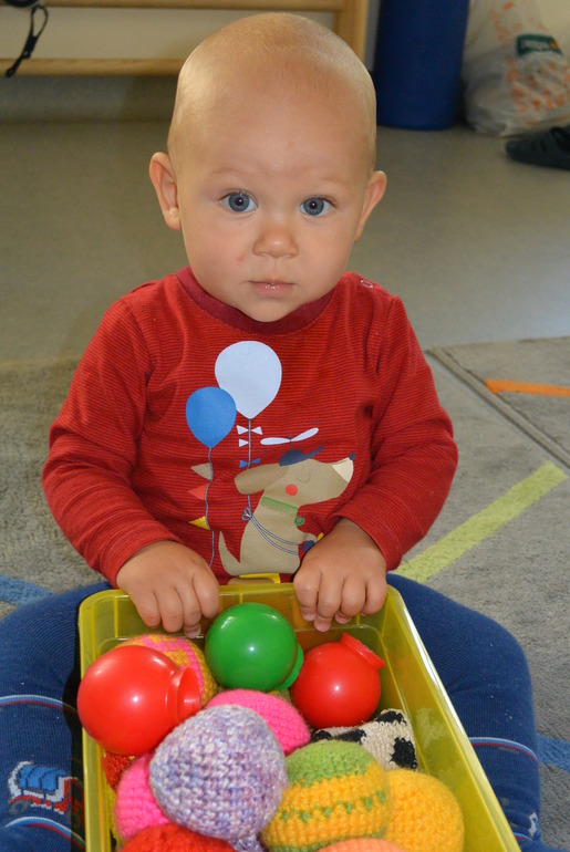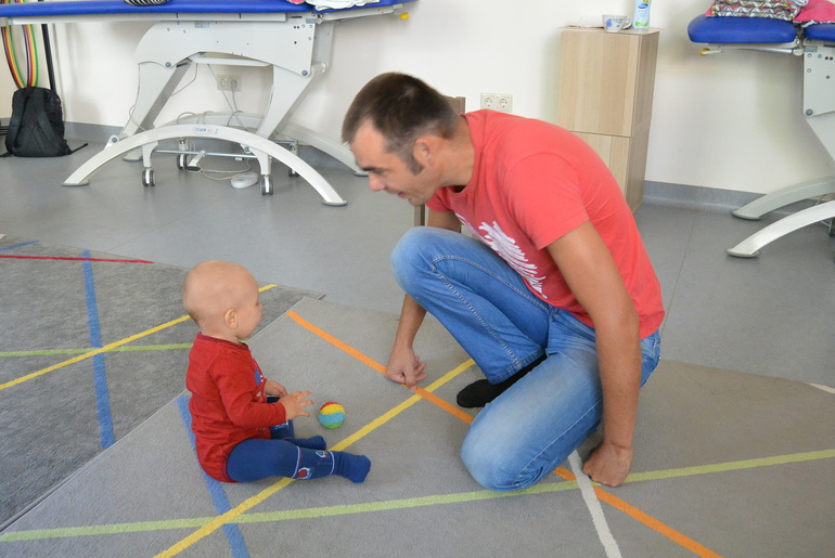 Если мы ездим на лечение с Макаром, то Ваня тоже время не теряет)) Научился кидать мячик, играют)