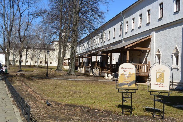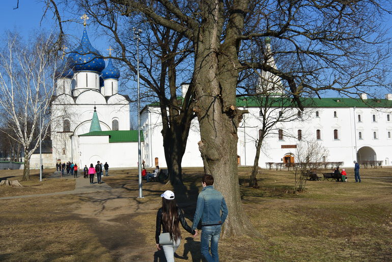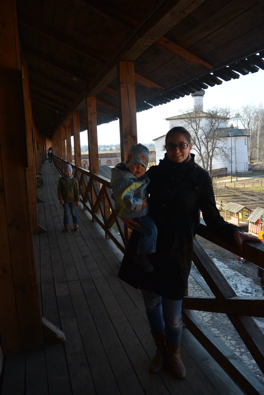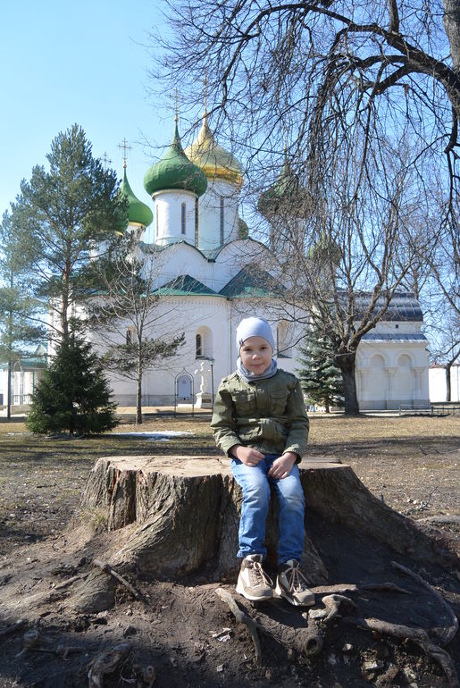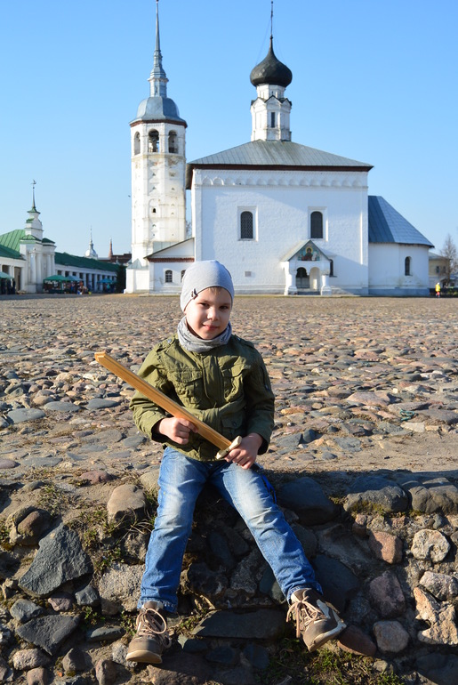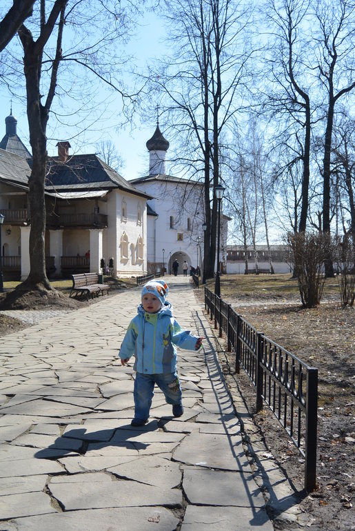 Суздаль нас встретил скоплением людей около Храма, что немудрено в Пасху то. Но в целом народа гуляющего было не много, комфортно. Нормальные люди перед поездкой изучают куда пойти, как добраться и все такое, но это не про нас))) Поэтому увидев какую-то стену старинную, мы остановились и двинулись ко входу. Оказалось, что это Спасо-Евфимиев монастырь. На территории несколько музеев, кафе и просто красивое место для прогулок. Вход 400 руб со взрослого, дети кажется до 10 или 12 лет бесплатно, мне дали льготный билет за 200 руб. как сопровождающему Макара. Билет включает с себя оплату всех музеев, которые там находятся.