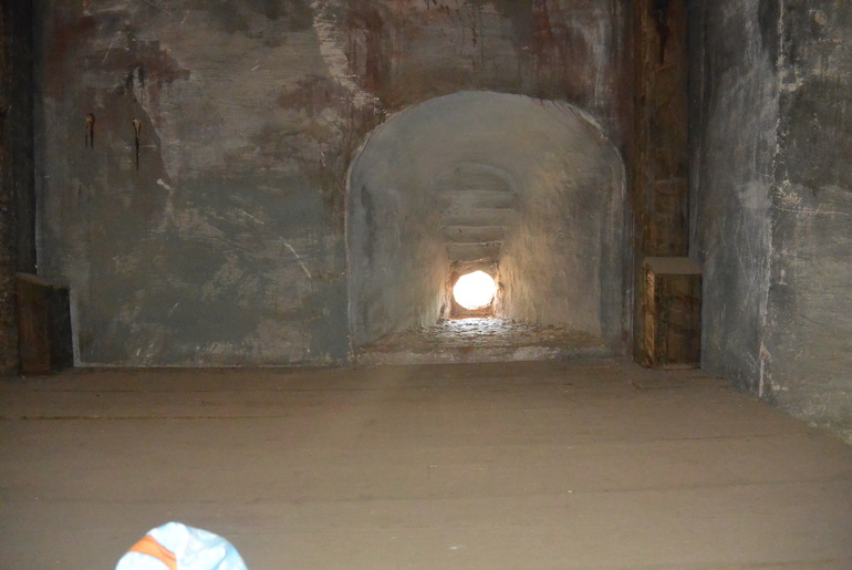 Тут, наверное, тоже стреляли из бойницы, возможно лежа, да? Там метра полтора до окошечка.