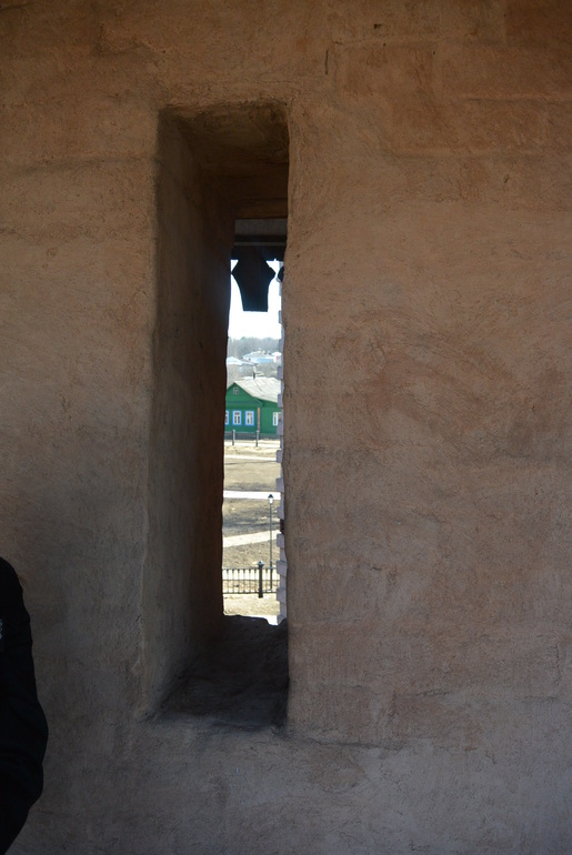 Узкие бойницы. Макар все интересовался стреляли ли через них. Стены очень толстые, больше метра.