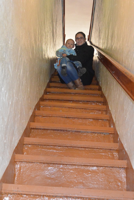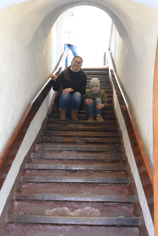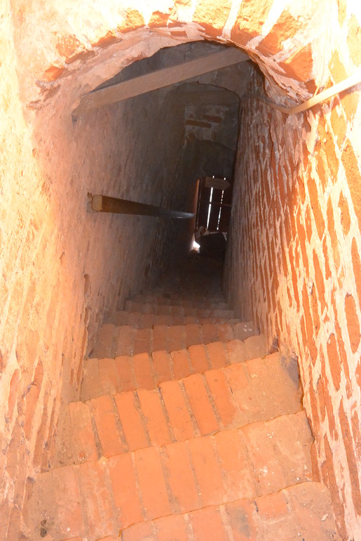 Есть из башни такой спуск с крохотными ступенями, очень узкий и совершенно темный)))