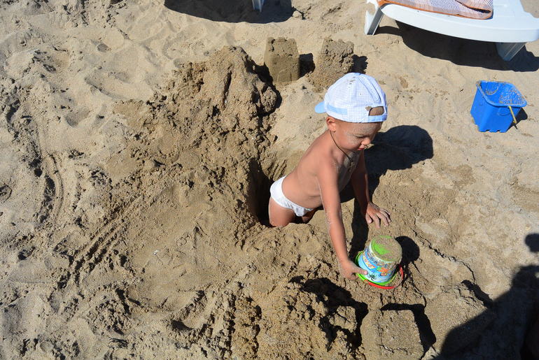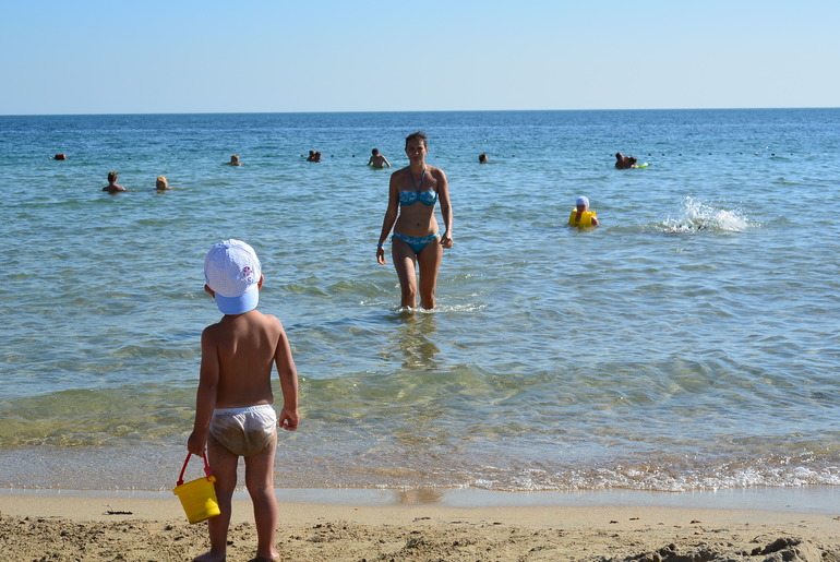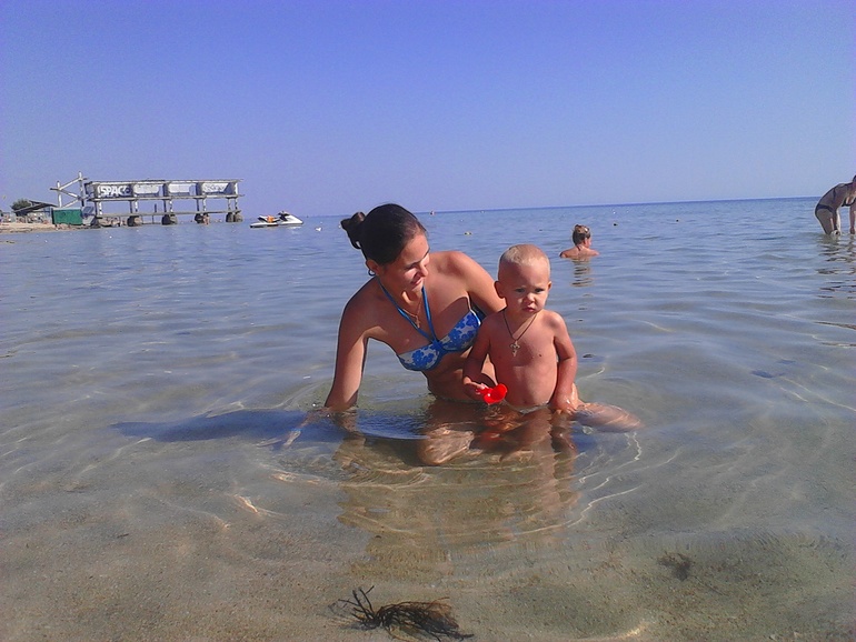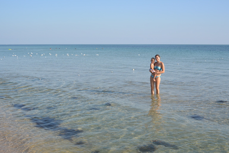 Море зато там волшебное! Макар у нас морской житель. Ему всегда хорошо на море, его расслабляет, он всегда там счастлив. Пляж был огорожен. Вообще вся береговая линия поделена на пляжи санаториев. На пляже хорошие лежаки и их много, есть нормальный туалет и душ, навес от солнца. Море чистейшее! Давно такого не видела. Народу никого вообще, только на нашем пляже был народ-рядом пустота. Песочек тепленький. С погодой повезло, купались 2,5 недели из 3х. Ваня к морю равнодушен, но иногда купался с удовольствием. Ну а Макар конечно не вылезал из воды, бегал по песку, по кромке воды.