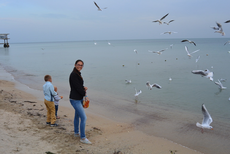 А назад мы решили уехать раньше, т.к. погода испортилась и море нам больше не светило, только если чаек покормить. Да и лететь опять на самолете я очень боялась с Ваней. Совместили приятное с полезным-заехали к моей подруге в гости в Краснодар. Просто так не вырвешься, а тут так приятно было пообщаться, дети наши поиграли, красота. Влезли в мой крошечный матиз - 2 взрослых, 2 детей в автокреслах, 2 чемодана, двойная коляска и так еще по мелочи.Доехали за 27-28 часов, в основном ехали ночью. Самой тяжелой была дорога на МКАДе, где мы плотно встали. После переправы на пароме (не стояли в очереди ни минуты), сразу видно, что уже не Крым - пострижена обочина, побелены деревья, разметка хорошая...надеюсь в Крыму будет также со временем, а пока там бурьян на обочине.