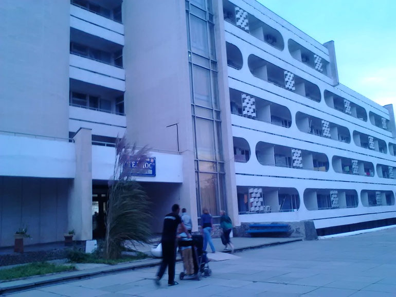 Номер был убитый и санаторий в целом тоже. Но мне в тот момент было вообще все равно, хотя муж думал, что я щас разорусь и уеду))) У нас было три кровати. И три матраса Уже, чем кровати и разные по высоте. Т.е. соединить две кровати невозможно. Также было пару тумбочек, небольшой столик, тв и холодильник, ну и санузел был. Ремонт был когда-то...давно видимо)) С пола отрывался паркет, наличники с дверей отходили, окна деревянные старые. Вместо шкафа - в нише сколочены полки. Пандусы есть везде самодельные. Наша группа в основном состояла из колясочников. Единственное что жаловались, что не влезает коляска в санузел и что на пляже пандус есть не до кромки моря и нет поручня. Однако это меня не убило, мне было все равно, главное чтоб кормили и было тепло на море! Мы приехали, чтобы Макар накупался и погрелся в песке.