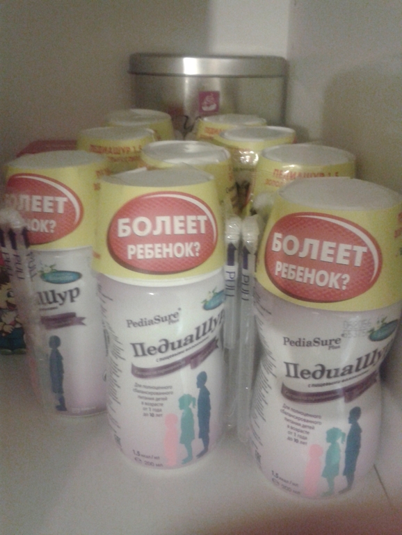 Также мы начали пить Педиашур. Макар снова потерял вес. Не могу сказать, что послужило причиной. Может в саду ест плохо. Точнее ест он плохо, не все что дают, так говорят воспитатели. Опять 19 кг, вместо достигнутых 21ого кг. Рост 125-126 см. На вид просто скелет. В одежде этого не видно. Все ушиваю, штаны на нем не держатся. В общем, долго колебалась, дорого. Если ведь пить, то не один день. Но Танюша перечислила Макару денежку на подарок и я решила на них все же закупить Педиашур. Спасибо, Танюш!