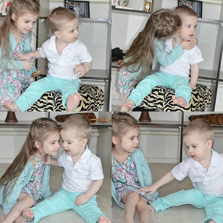 Очень шустрый растет, везде лезет, слова "нет" и "нельзя" для него как будто отсутствуют, кусает, щипает, кидает игрушками, в основном достается конечно Агни, но при этом конкретный маменькин сынок, со мной везде, постоянно за руку держит, в общем полная противоположность дочки. Знаю, что к нему я намного мягче, чем была с дочкой, и это моя ошибка, поэтому он передо мной такие концерты устраивает, а с другими идеальный ребенок.
