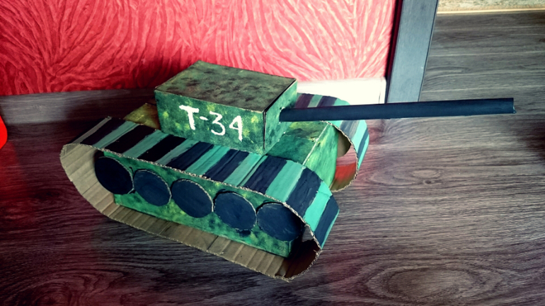 Наша подделка в Д/С. Делали все вместе, даже муж подключился) Воспитателю дали грамоту за лучшие подделки. Выделили 2 работы, включая нашу. Танк получился см.40 в длину)