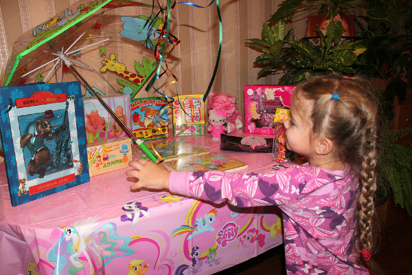 часть подарков уже безнадежно растащена по квартире) электронный говорящий календарь, клеящая мозаика, лизуны всякие...