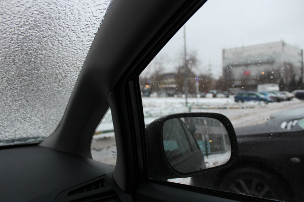 случился ледяной дождь. машина за час стояния у сада стала такой:
