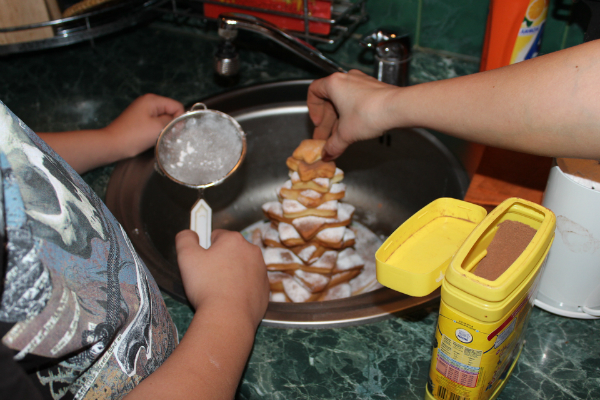 для начала мы с Маришей и детьми испекли застольную ёлочку! при креативном настроении это тоже очень веселое занятие))